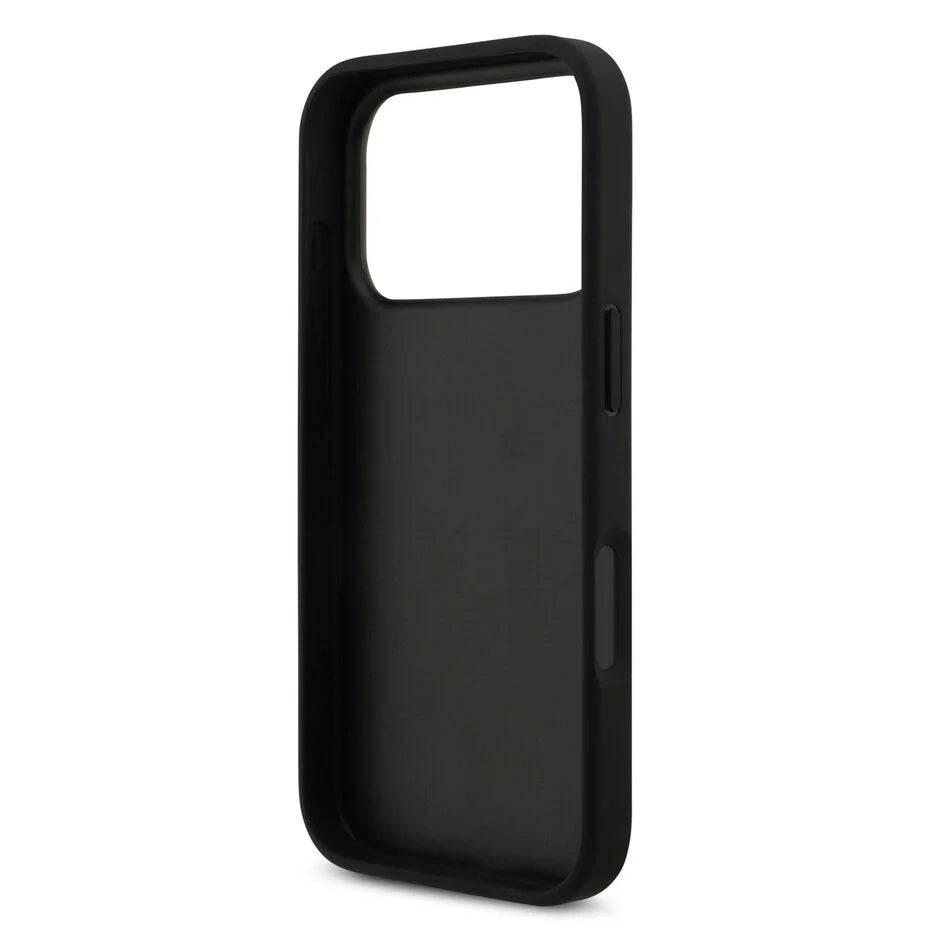 GUESS Hoesje voor iPhone 17 Pro – Zwart Design met Gouden Logo & Textuur